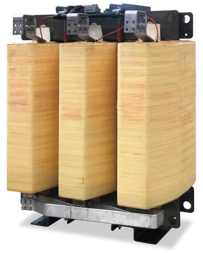 Dry-type transformers and reactors up to 10MVA with network voltages up to 1.1kV, widely manufactered usign VPI technology.