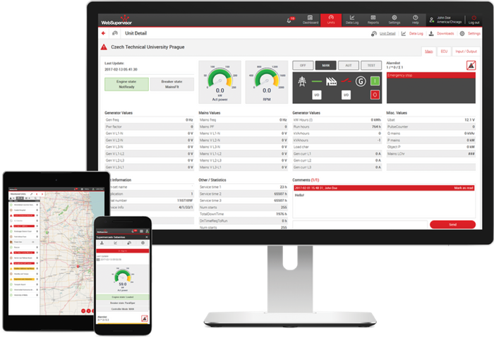 WebSupervisor is a cloud-based system designed for monitoring, data analysing and management of ComAp and third-party devices. It provides you with an easy overview of all your devices, their operational status, location and other important data, and alerts you in case of potential issues. Using its powerful reporting and analysis tools, you can optimise the revenue for your gen-set fleet, minimise downtime and reduce maintenance costs.